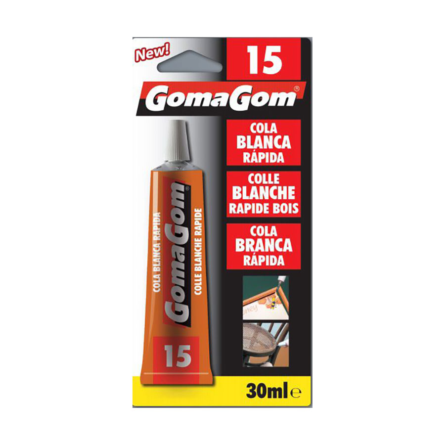 Cola Branca Rápida GomaGom de 30mL, cola firmemente duas superfícies que necessitem de permanecer unidas indefinidamente. Poderá fazer uniões e reparações firmes e duradouras em casa, no escritório e na indústria. Disponível em caixas de 12 unidades.