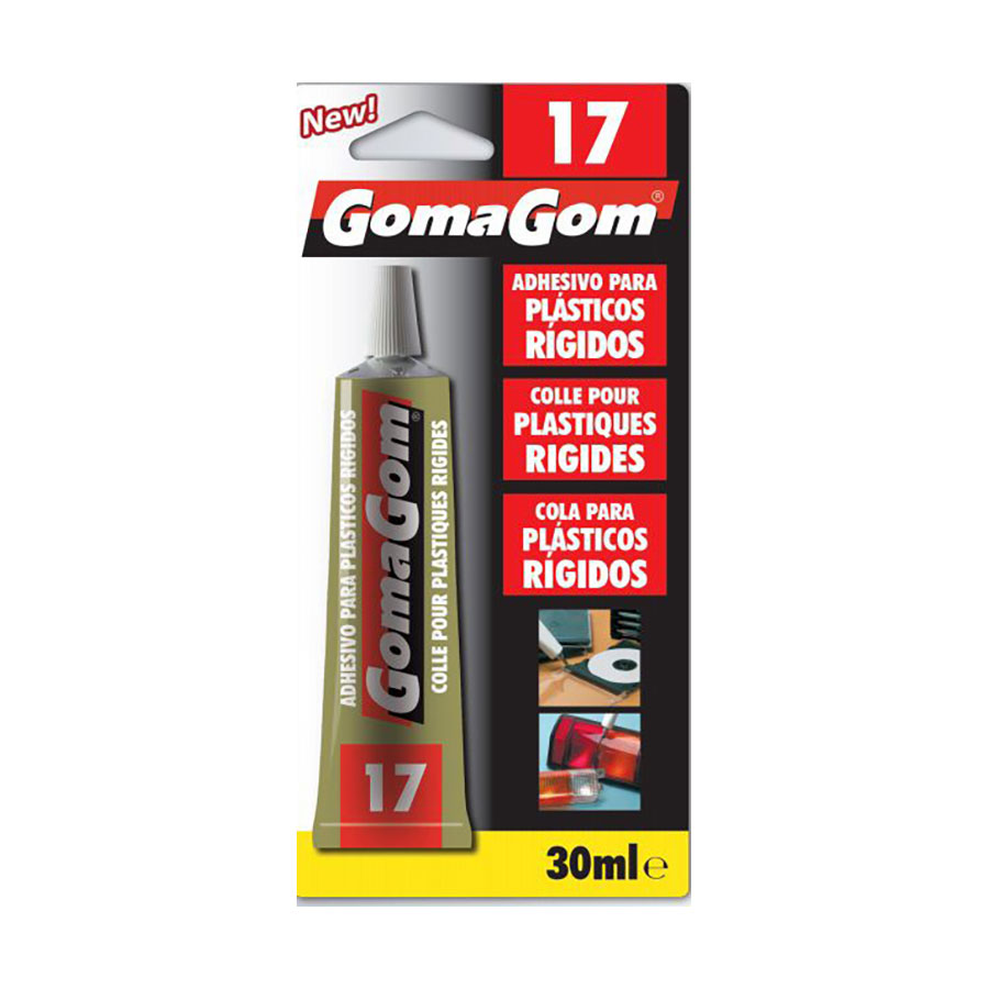 Cola para Plásticos Rígidos GomaGom de 30mL, cola firmemente duas superfícies que necessitem de permanecer unidas indefinidamente. Poderá fazer uniões e reparações firmes e duradouras em casa e no escritório. Disponível em caixas de 12 unidades.