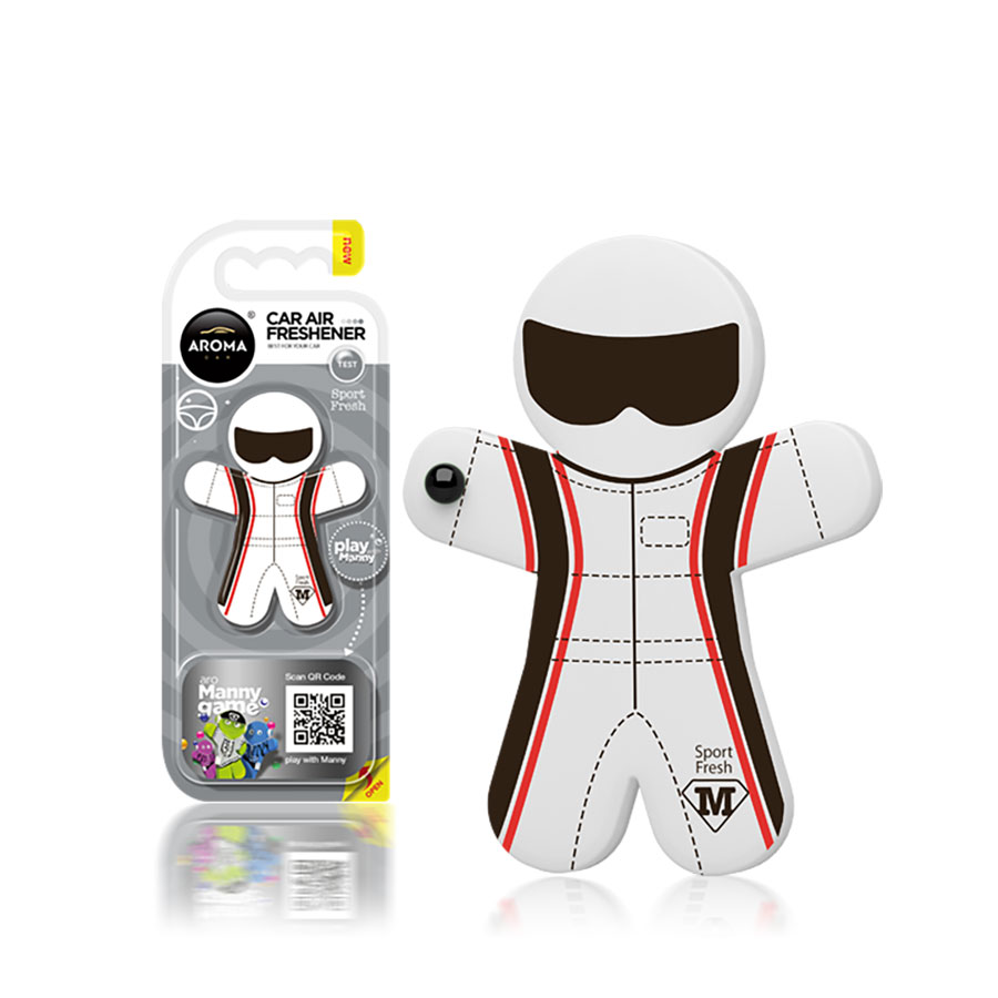 O Ambientador Manny Bubble Gum da Aroma Car, possui um corpo preenchido com o aroma, que é libertado no processo de evaporação, sendo uma forma divertida e alegre de desfrutar de uma fragância intensa e refrescante.